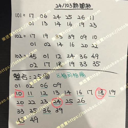 | 第24/103期 (看影片) | 25個號碼 | 2.5字 |