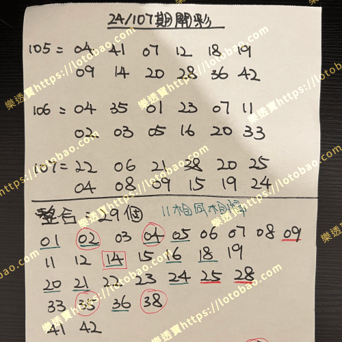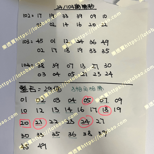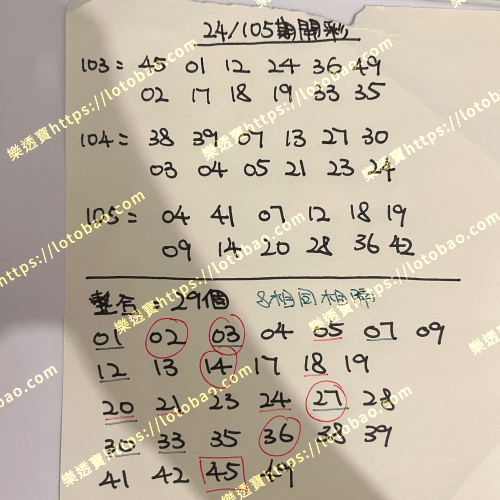 | 第24/105期 (看影片) | 29個號碼 | 5.5字 – 二獎 |