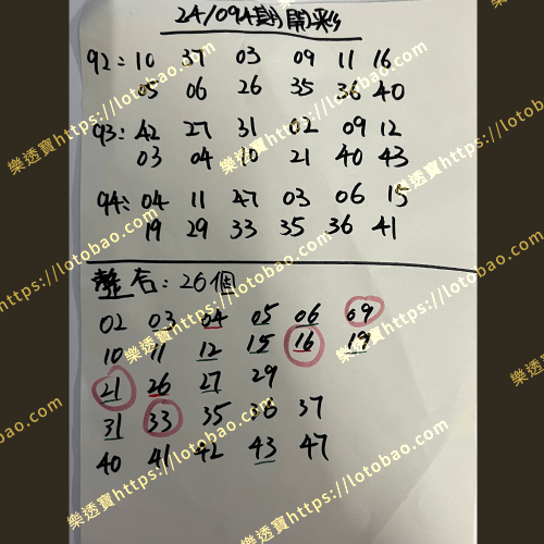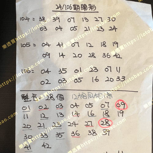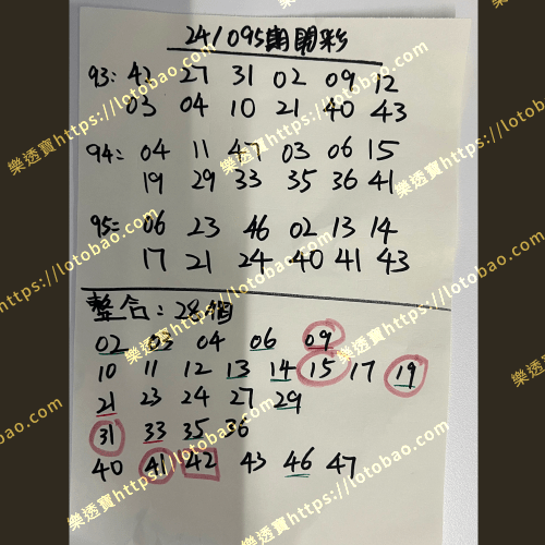 | 第24/095期 (看影片) | 28個號碼 | 5.5字 – 二獎 |