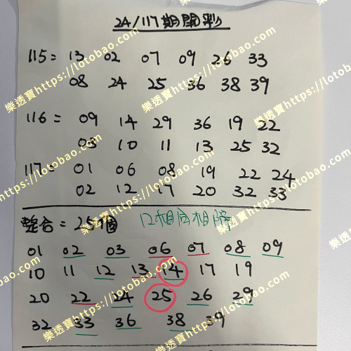 | 第24/088期 | 25個號碼 | 6.5字 – 頭獎 |
