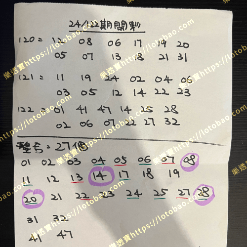 | 第24/120期 (看影片) | 26個號碼 | 2.5字 |