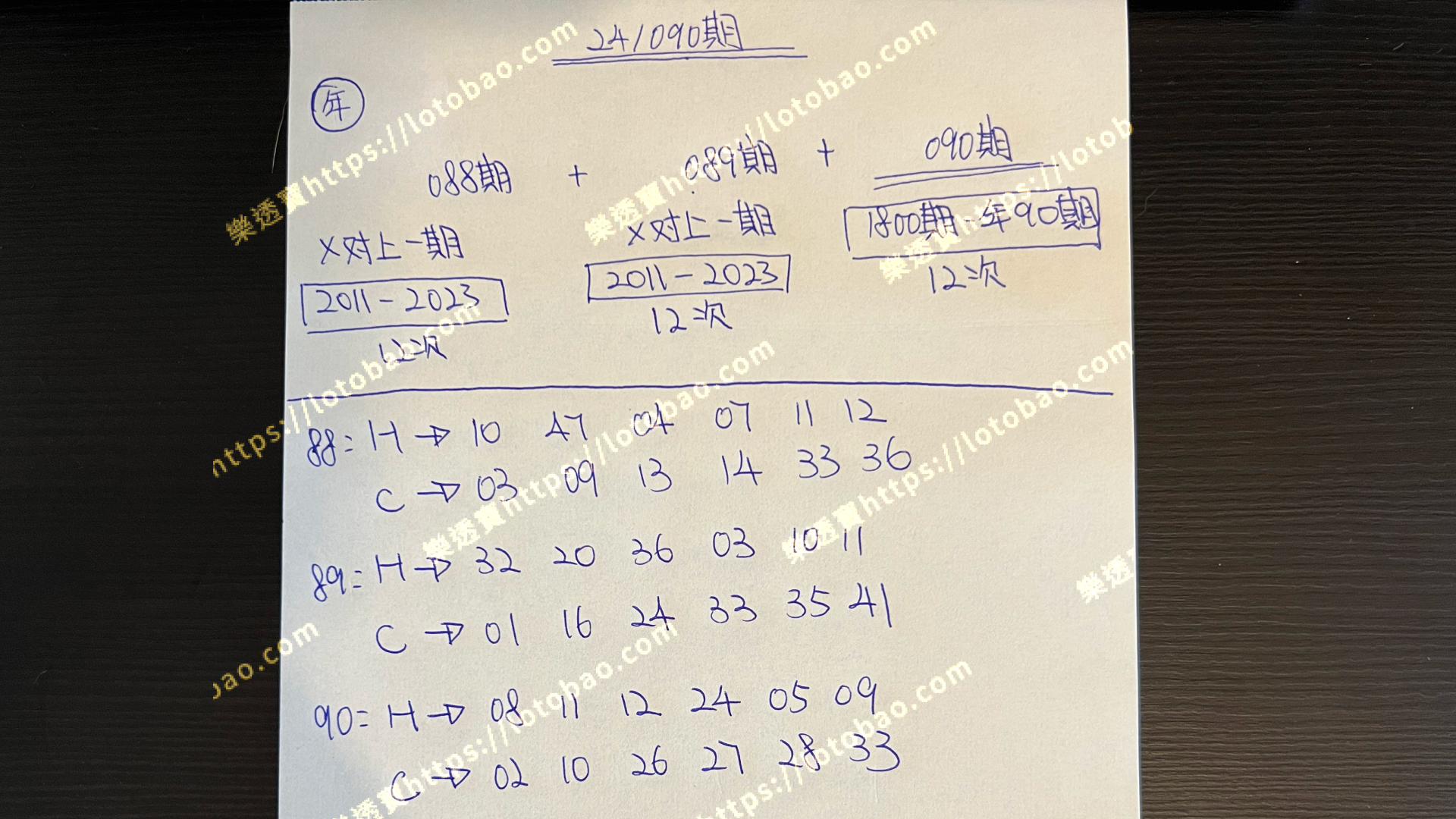 2: 089期,會使用2011年7月 – 2023年8月開彩結果,一共12次!(我的方法是不計算2024年數據)