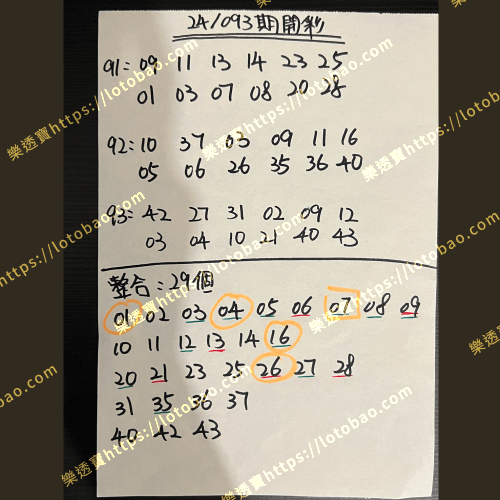 | 第24/091期 (看影片) | 25個號碼 | 4.5字 |