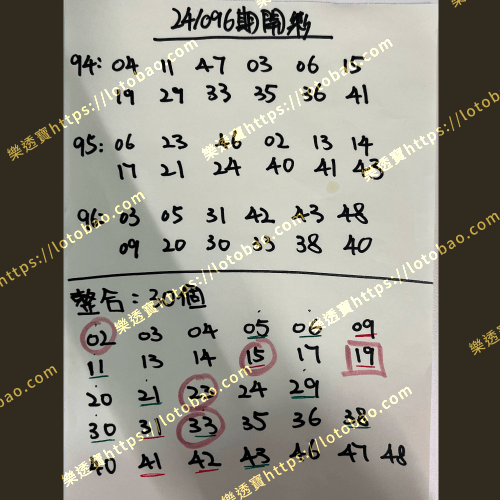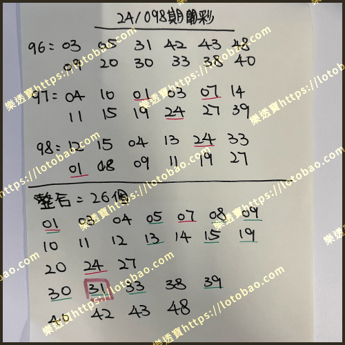 | 第24/096期 (看影片) | 30個號碼 | 4.5字 |