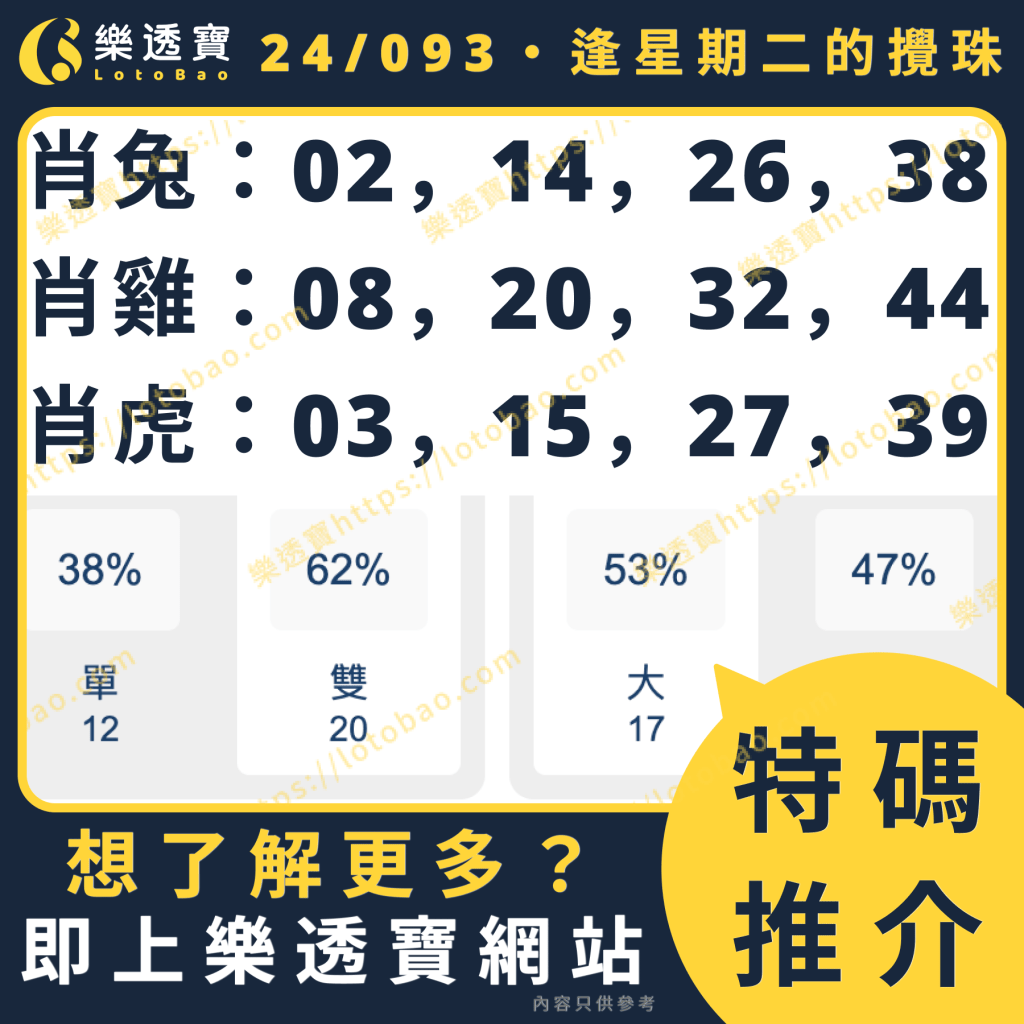 想知更多不同特碼數據分析?上樂透寶https://lotobao.com/啦!