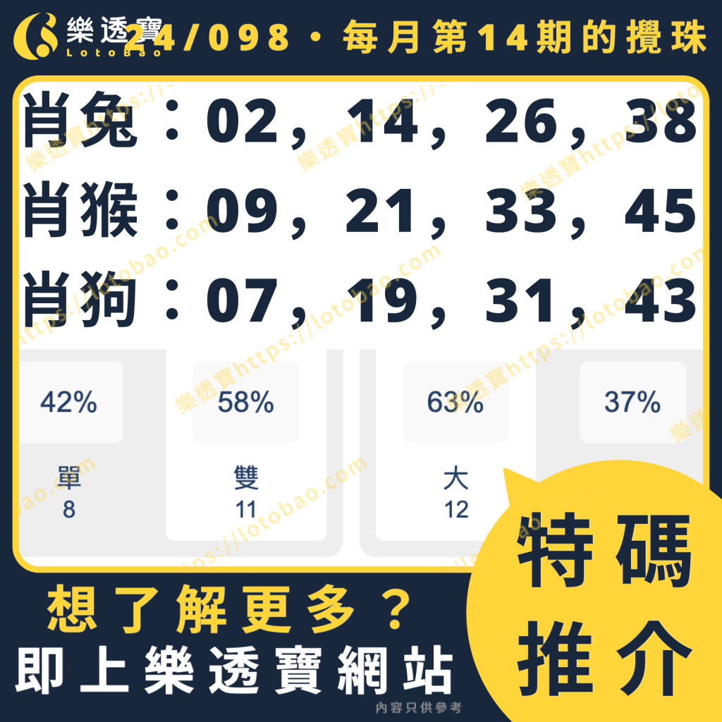 想知更多不同特碼數據分析?上樂透寶https://lotobao.com/啦!