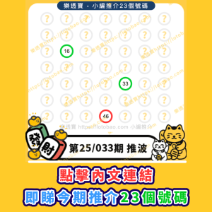 上期六合彩第25/032期-20250322:推介23個號碼中1.0字!再接再厲!