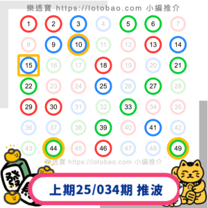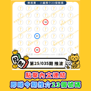 上期六合彩第25/034期-20250327:推介23個號碼中1.5字!再接再厲!