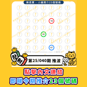 上期六合彩第25/039期-20250408:推介23個號碼中3.0字!再接再厲!