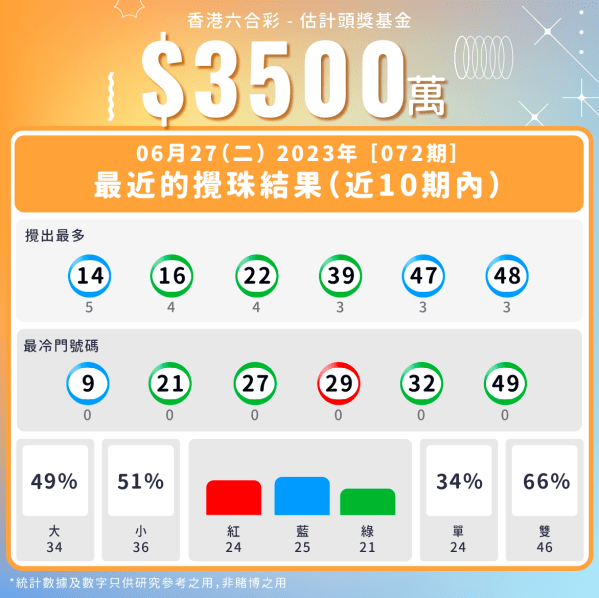 第72期六合彩攪珠及派彩結果,以及下期攪珠日及獎金!