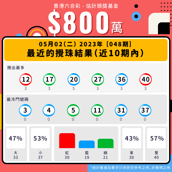 第47期攪珠及派彩結果,以及下期攪珠日及獎金!