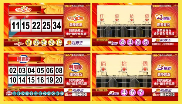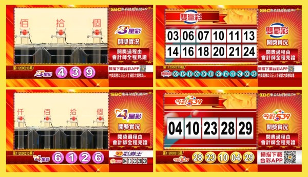 台彩 - 今彩539、雙贏彩、4星彩及3星彩等各項開獎獎號。