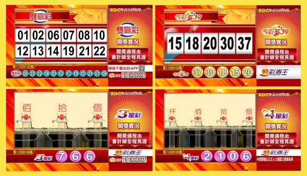 台彩 - 大樂透、今彩539、雙贏彩、4星彩及3星彩等各項開獎獎號。