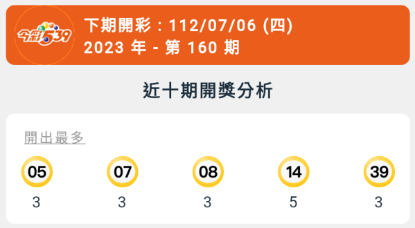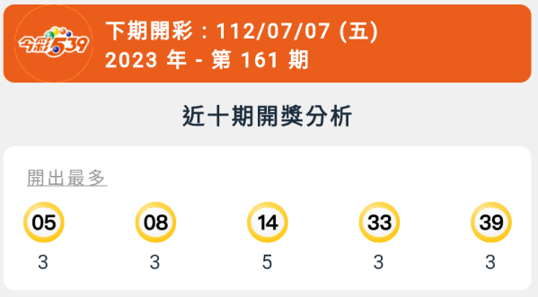 台彩 - 今彩539、雙贏彩、4星彩及3星彩等各項開獎獎號。