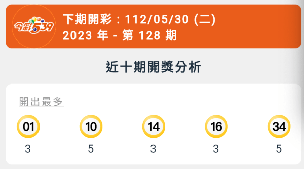 【今彩539】第128期統計分析