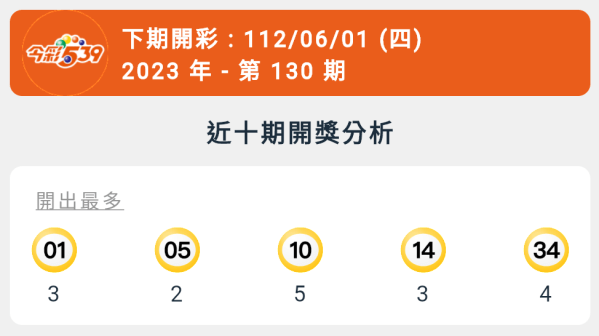 【今彩539】第130期統計分析
