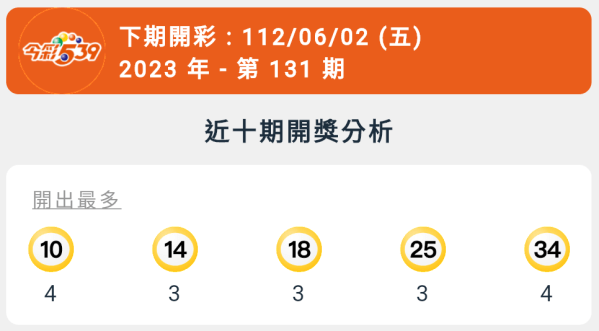 【今彩539】第131期統計分析