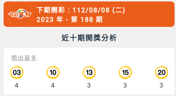 【今彩539】第188期統計分析
