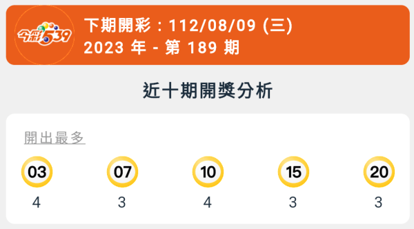 【今彩539】第189期統計分析