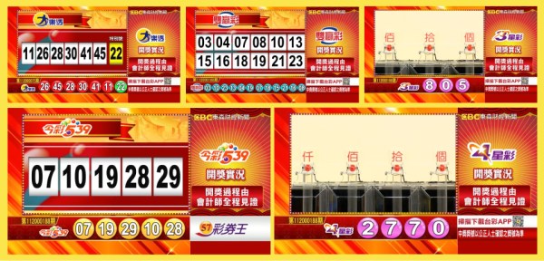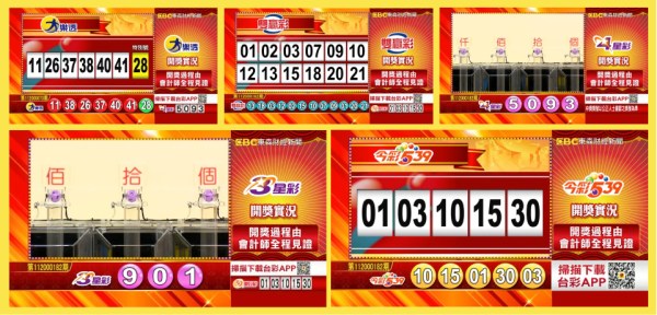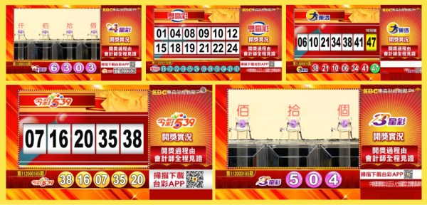 台彩 - 大樂透、今彩539、雙贏彩、4星彩及3星彩等各項開獎獎號。