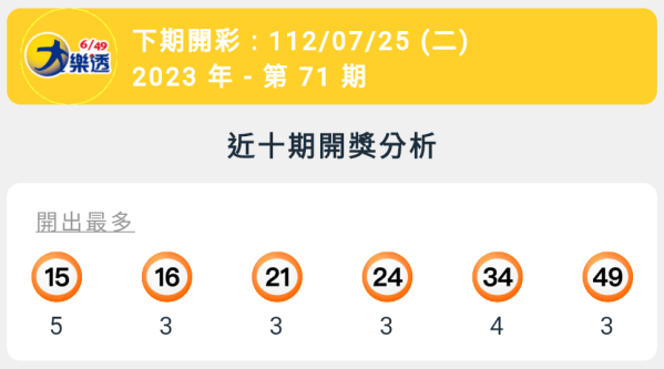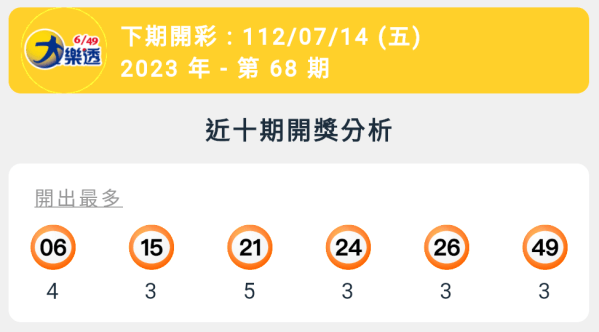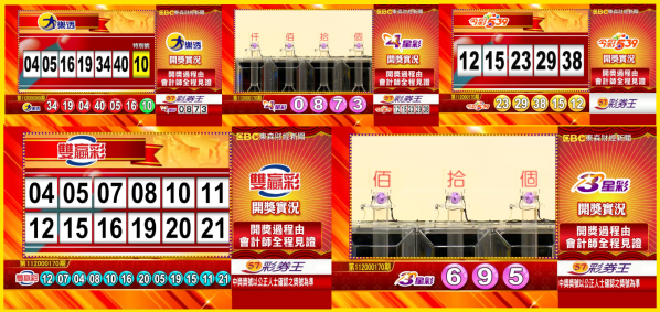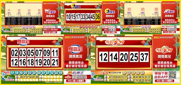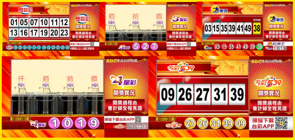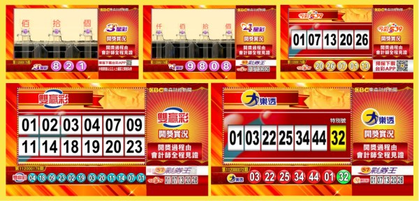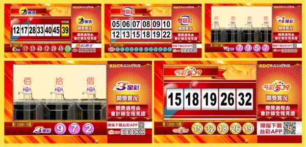 台彩 - 大樂透、今彩539、雙贏彩、4星彩及3星彩等各項開獎獎號。