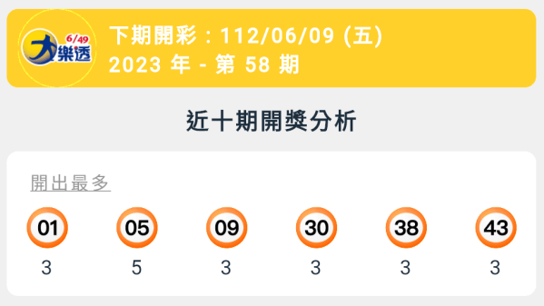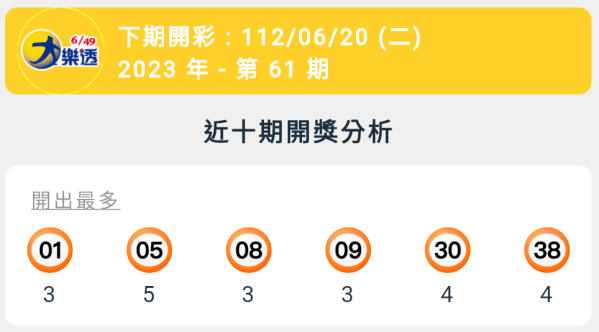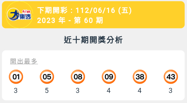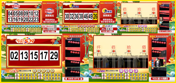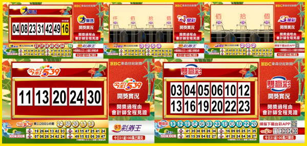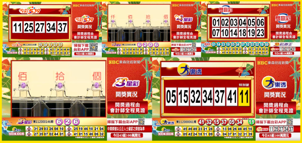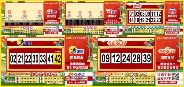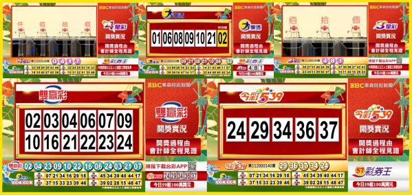 台彩 - 大樂透、今彩539、雙贏彩、4星彩及3星彩等各項開獎獎號。