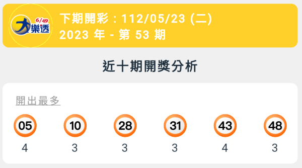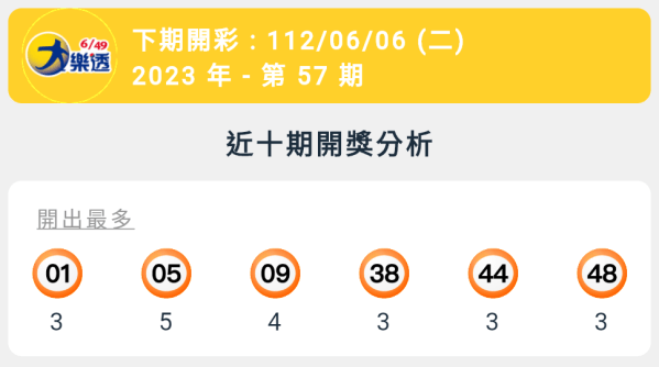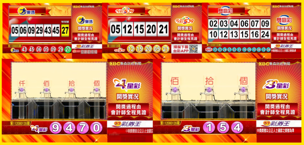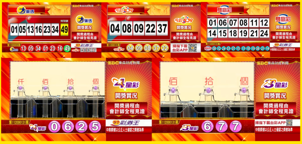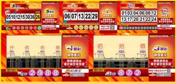 台彩 - 大樂透、今彩539、雙贏彩、4星彩及3星彩等各項開獎獎號。