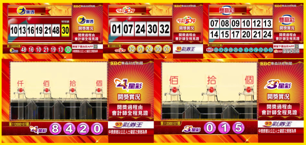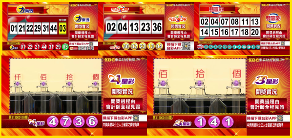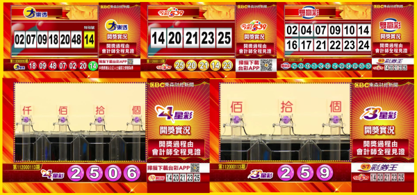 台彩 - 大樂透、今彩539、雙贏彩、4星彩及3星彩等各項開獎獎號。