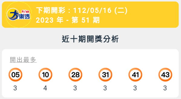 【大樂透】第51期統計分析