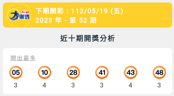 【大樂透】第52期統計分析