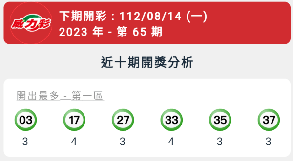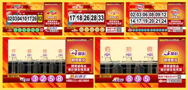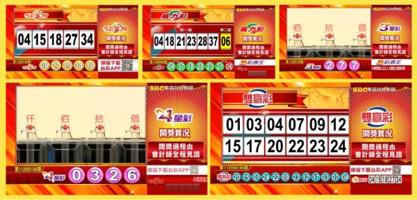 台彩 - 威力彩、今彩539、雙贏彩、4星彩及3星彩等各項開獎獎號。