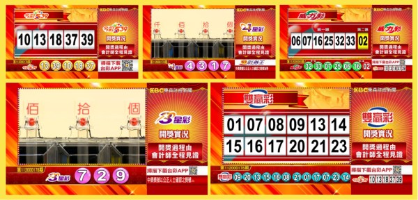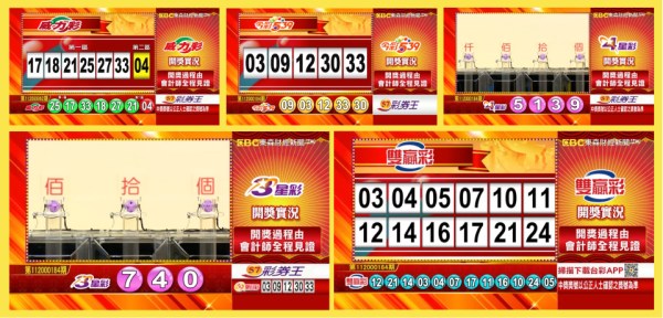 台彩 - 威力彩、今彩539、雙贏彩、4星彩及3星彩等各項開獎獎號。
