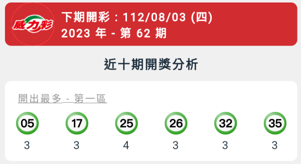 【威力彩】第62期統計分析