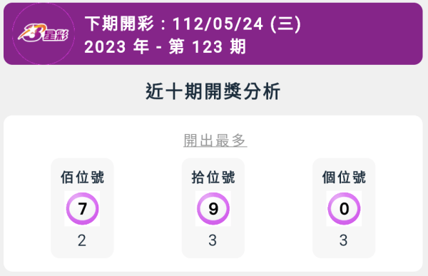 台彩 - 今彩539、雙贏彩、4星彩及3星彩等各項開獎獎號。
